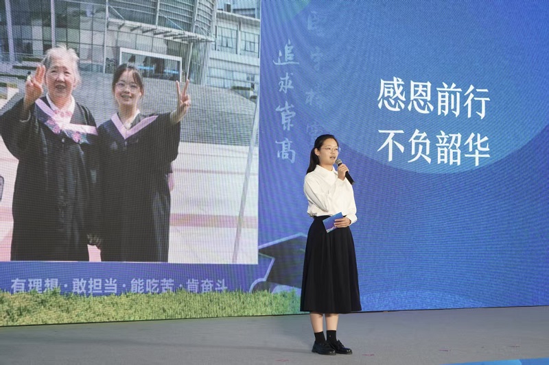 9月27日上午,2026届全国高校毕业生“金秋启航”校园招聘月活动暨江苏省2026届高校毕业生公益供需洽谈会在江苏南京举行。淮阴师范学院2025届优秀毕业生严慧作为江苏高校毕业生代表在启动仪式上作交流发言。