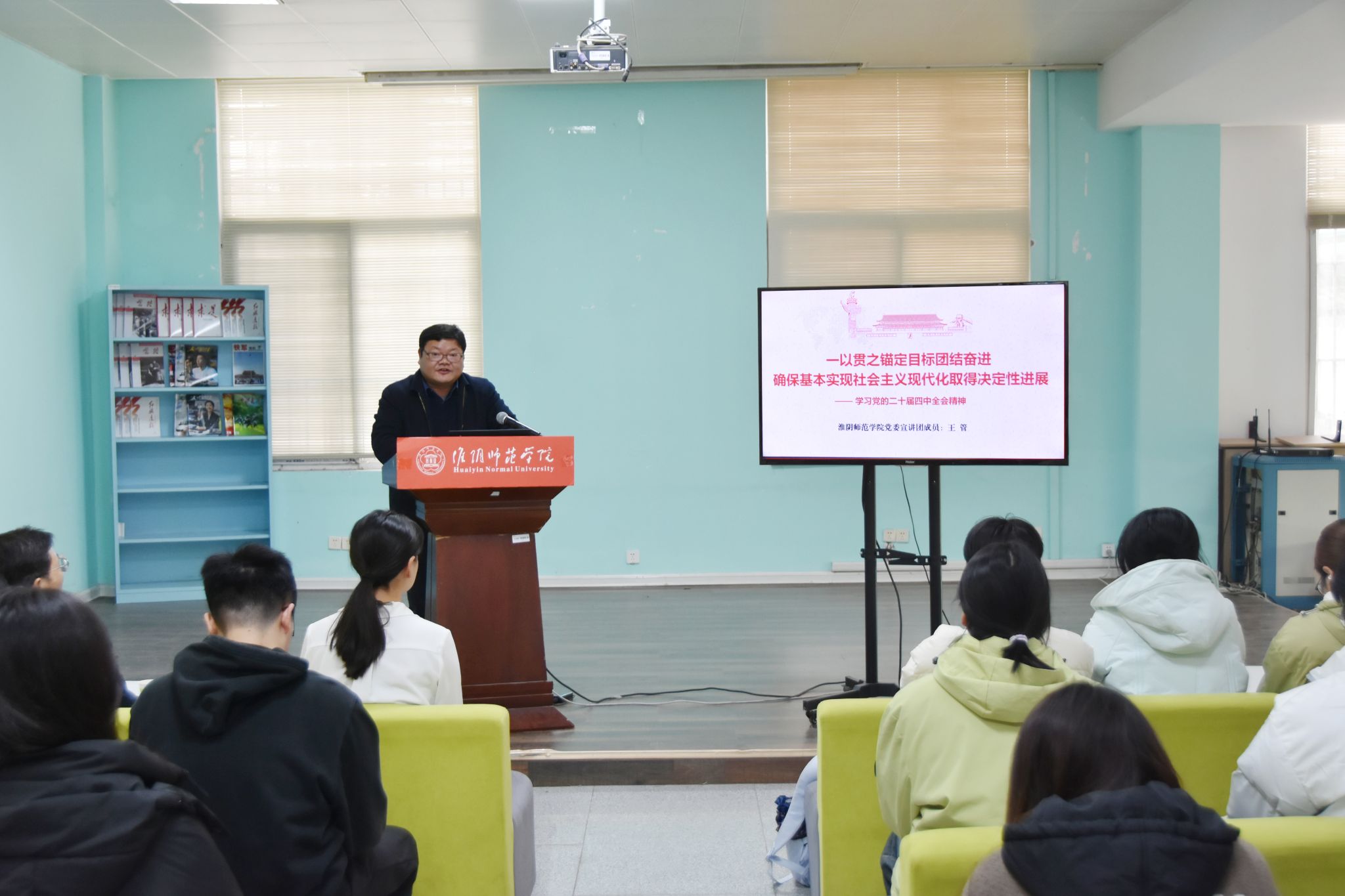 12月9日,淮阴师范学院在“一站式”学生社区开展党的二十届四中全会精神宣讲报告会,校党委宣讲团成员、学生工作部部长王管为社区学生党员、学生干部作专题报告。