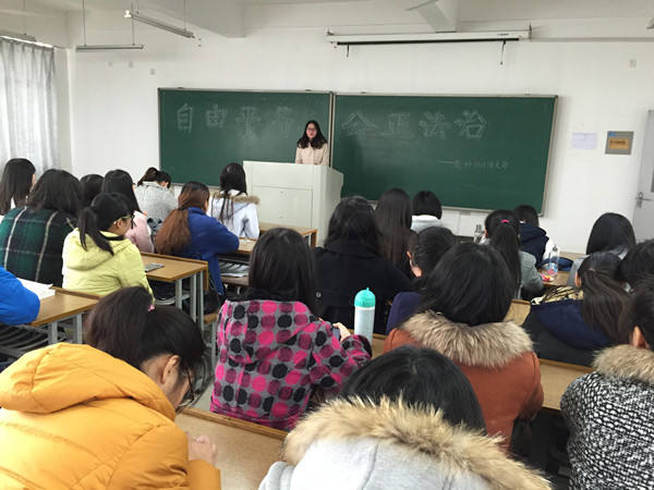 你所站立的地方,就是你的中国;你怎么样,中国便怎么样;你有光明,中国便不黑暗。”淮阴师范学院今年的主题教育月期间,这首小诗在教育科学学院的同学们中间广为流传。自由、平等、公正、法治,这是从社会层面对社会主义核心价值观的高度凝练,更是对美好社会的生动描述。那么,如何实现这样美好的愿景呢?教科院学子结合自己的专业知识、技能,开展了一系列富有创意、具有实效的实践活动。一位参与活动的同学感慨道:“我相信,如果我们每个人都是自由、平等、公正、法治的代言人和实践者,那么我们所组成的民族、社会、国家就一定是自由、平等、公正、法治的!”