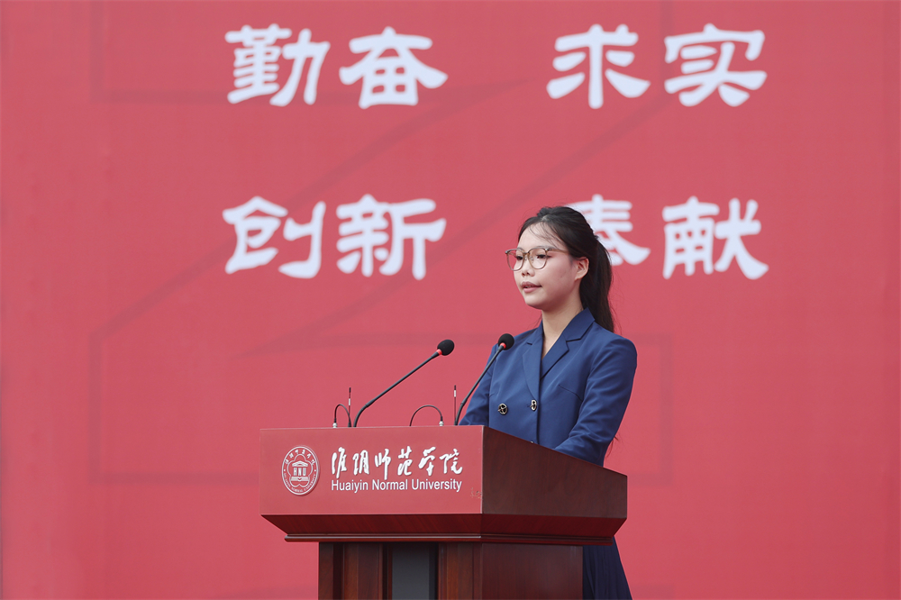 2025级本科生代表钟思宇、研究生代表郁佳琪表示,未来的四年,将是探索知识、塑造品格、追逐梦想的黄金年华。在这里,我们将沐浴着周恩来崇高精神风范的光辉,感受着“坚守朴实、追求崇高”的淮师精神,以青春之我、奋斗之我,用汗水浇灌梦想,用奋斗书写华章!