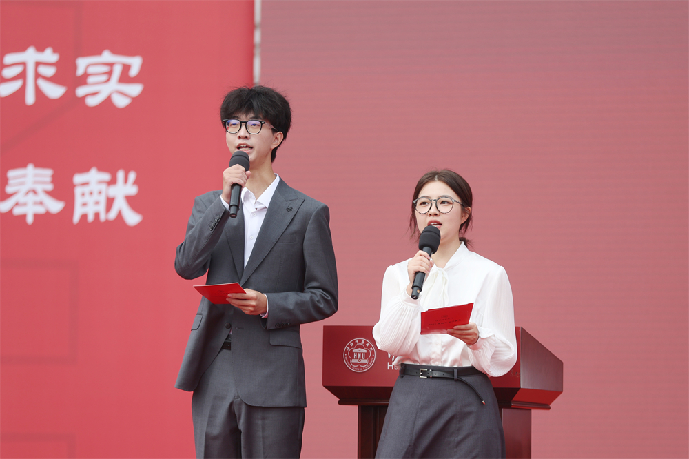 典礼上还举行了校旗入场仪式和新生代表佩戴校徽仪式。文学院的同学们带来了集体诗朗诵《走向辉煌》。开学典礼在校歌《报国壮志酬》中落下帷幕。